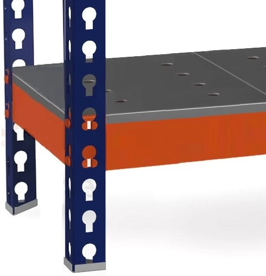 - Располагающий внешний вид стеллажа, а также защиту от коррозии обеспечивает специальное порошковое полимерное покрытие двух цветов: оранжевого и светло-синего.